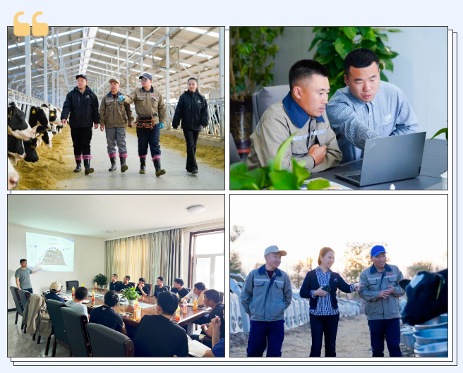 比如環球的跟蹤服務這塊,會定期派服務團隊深入牧場,與牧場繁育技術人員一同進牛棚,糾正他們的不當操作。駐場培訓一段時間后,技術人員各方面取得很大進步。
